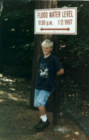 One of the more fascinating aspects of our visit was an up close and personal view of the damage inflicted on Yosemite Valley during the floods of 1997. Throughout the valley there are signs hinting at the magnitude of the the flooding, as Chris illustrates in a photo below. He would have been underwater! One campground was wiped out, and cement barrier remain in their final resting positions after being tossed about by the floodwaters.