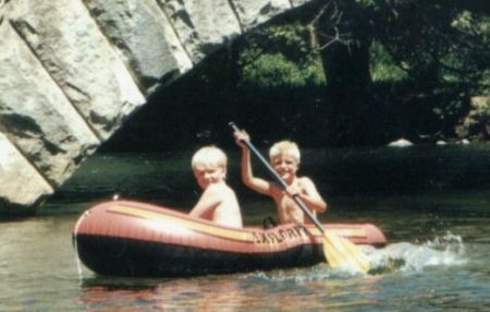 Speaking of warm, can you tell from the picture that the boys were a bit ragged? (When I mentioned the hot drive above, I meant it…try 110º through the Central Valley!) The hot weather and crowds did not help their mood that day. As luck would have it, our nextdoor campers and their boys were nice enough to allow Sean and Chris to enjoy their rafts.