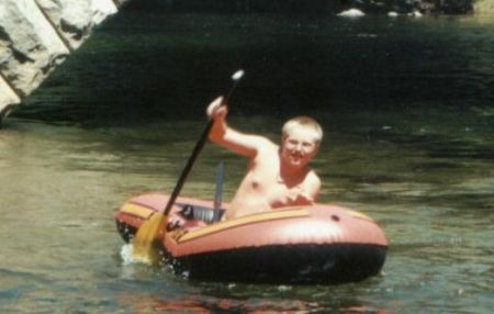 - Chris and friend enjoying the Merced River.
