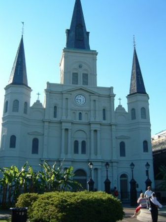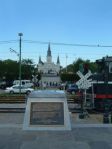 I passed by the statue of Andrew Jackson again Thursday night…but not because I had meant to. I was in search of The Praline Connection, a down-home-style restaurant recommended by my sister and her husband, but was misdirected and ended up walking through the Warehouse District before I found that The Praline Connection I was sent to was the second Praline Connection, leaving me to walk back across the Warehouse District and all the way across the French Quarter. I was just about to give up when I turned a corner and there it was. I do not know if it was my hunger, but the food was good (alligator sausage followed by fried chicken with cornbread, red beans and rice, and potato salad). Dessert was a praline to go. Based on mapping my route on the computer, I walked about six miles in search of this dinner!