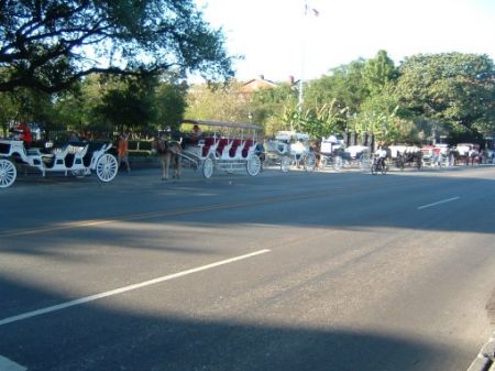 Along Decatur Street, just in front of Jackson Square, is where the various tour carriages line up. Though people hold the reins, it was funny to watch the mules automatically organize themselves as they lined up behind each others’ carriages. So habitual is this behavior, one attendant, who was not paying attention, had to run after his carriage.