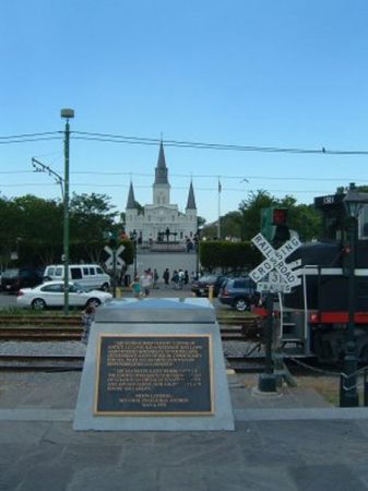 I had decided that during my first evening in New Orleans that I would chase down a highly recommended restaurant for some old-school New Orleans food. On the way there, I passed the St. Louis Cathedral, as I left Bourbon Street and headed towards the Mississippi River. During his second visit to the United States, Pope John Paul II celebrated there. The St. Louis Cathedral, completed in 1794 and the oldest church in New Orleans, can be seen from Jackson Square, which has always been an open area in the heart of the French Quarter. Originally known as the Plaza d’Armas, this common area was used at times as military parade grounds, and later as a market place for fish, fowl, and produce. It faces the Mississippi River and contains a statue of its namesake, Andrew Jackson, the hero of the Battle of New Orleans. In the square is a memorial to the Louisiana Battalion Washington Artillery, which has fought in every major war since the Civil War.